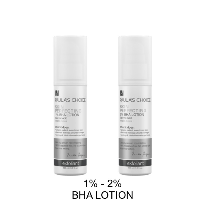 Paula cho Salicylic Acid (BHA) vào rất nhiều sản phẩm của mình, nhưng dưới đây là các loại BHA ở dạng thuần tẩy da chết (exfoliants) dùng được toàn mặt.